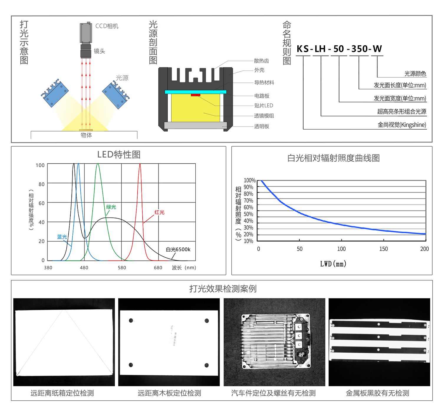 采用大功率LED和聚光透鏡,亮度高,實現遠工作距離照明;二代產品優化內結構,光斑均勻、穩定;優化防護面板,整體外形美觀;出線口從中間移到側邊,便于裝配;